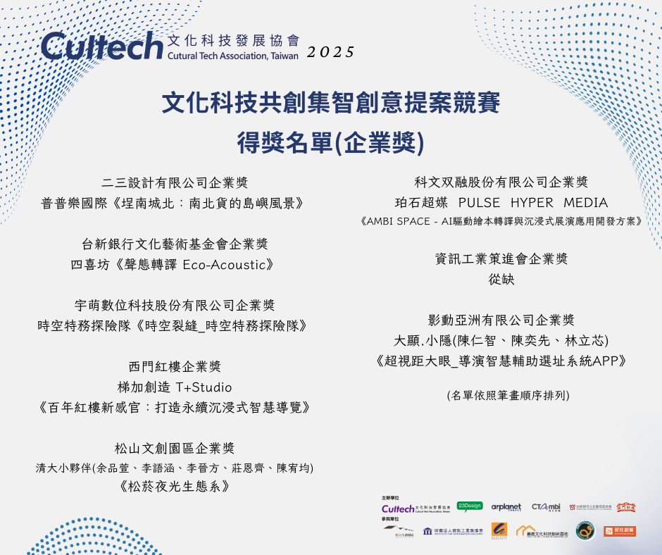 2025 CULTECH 文化科技共創集智創意提案競賽 得獎名單公告